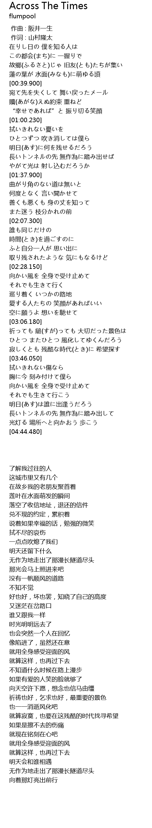 | [03:32.870] | 寂しくとも 残酷な時代(とき)に 希望探す |