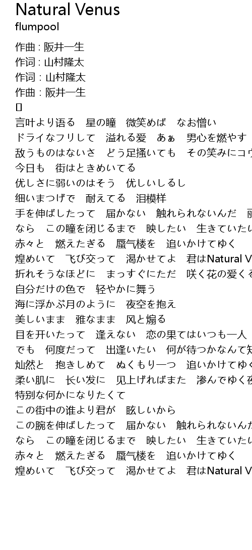 | 煌めいて 飞び交って 渴かせてよ 君はNatural Venus |