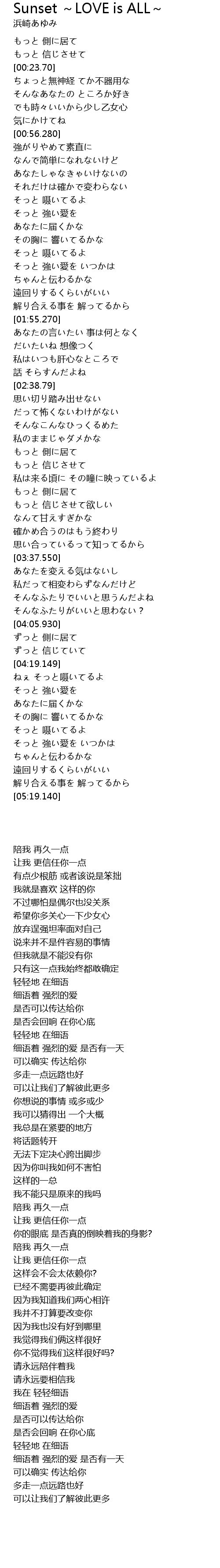 | 歌曲 | Sunset ~LOVE is ALL~ |