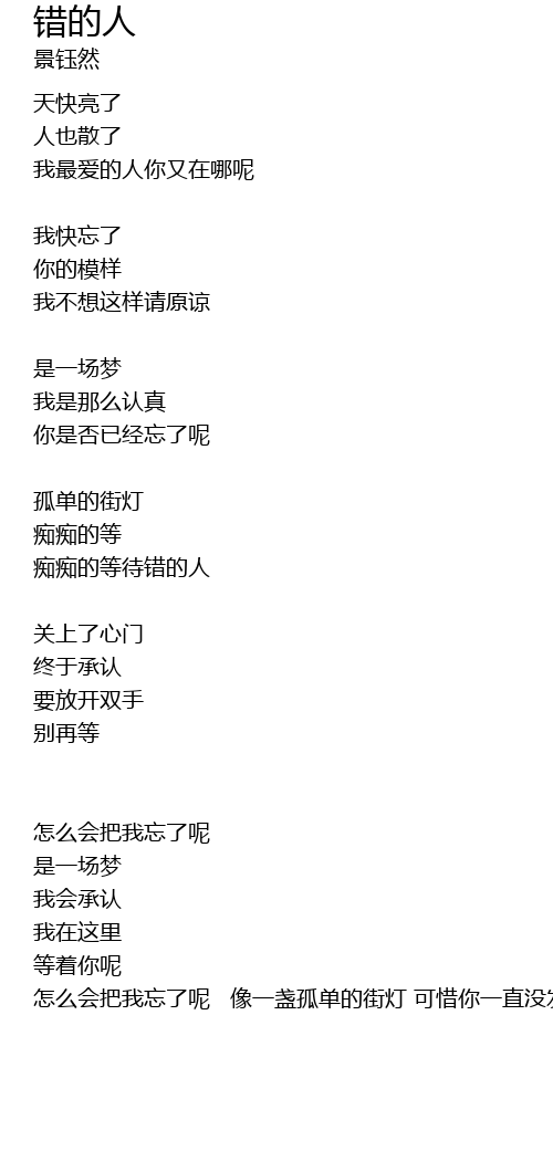 | 怎么会把我忘了呢 像一盏孤单的街灯 可惜你一直没发现 |