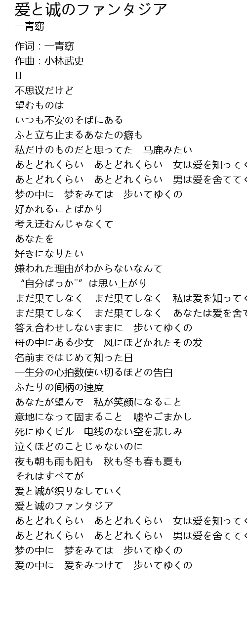 | まだ果てしなく まだ果てしなく 私は爱を知ってく | |