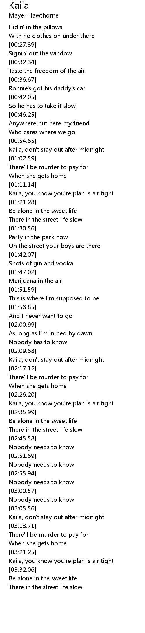 Kaila, don't stay out after midnight |
