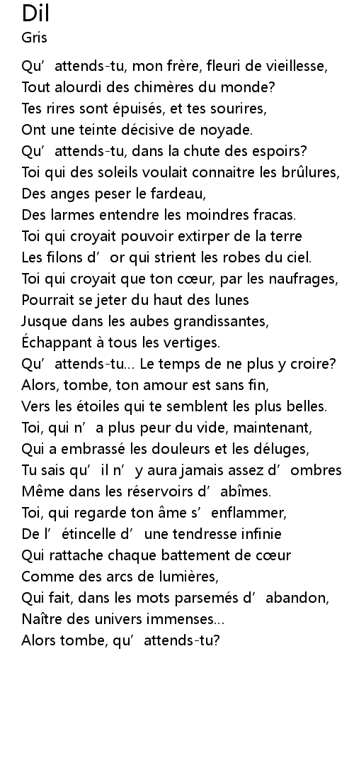 | Qu' attendstu Le temps de ne plus y croire? | |