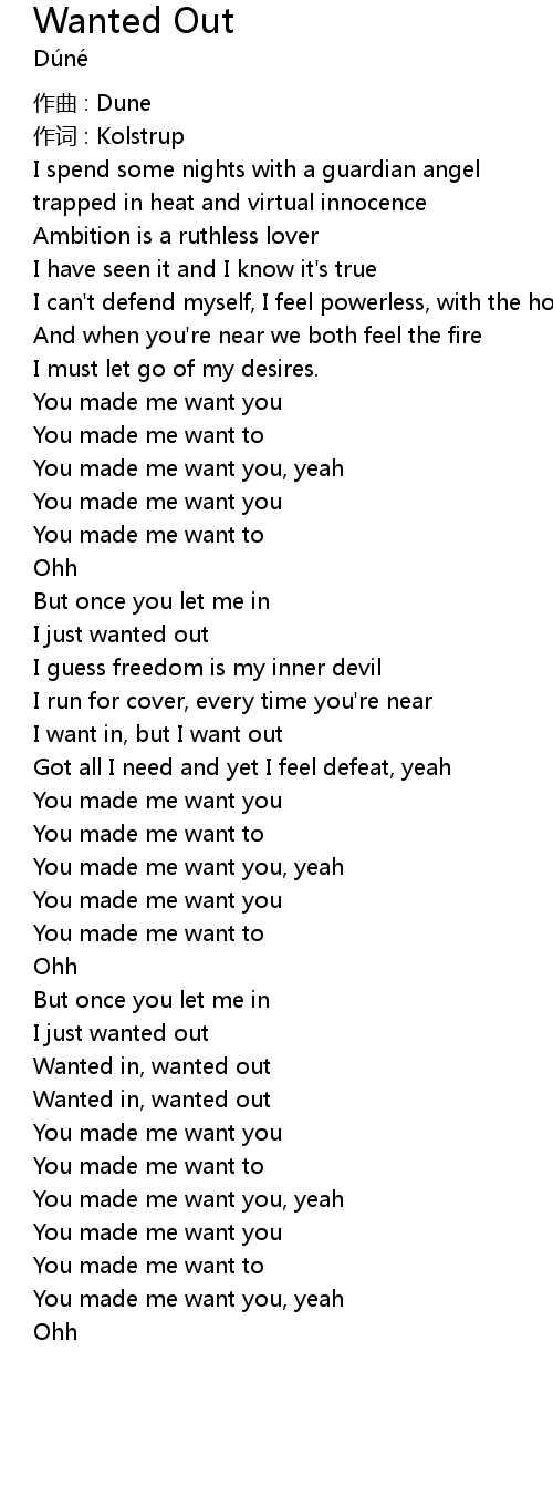 | 歌曲 | Wanted Out |