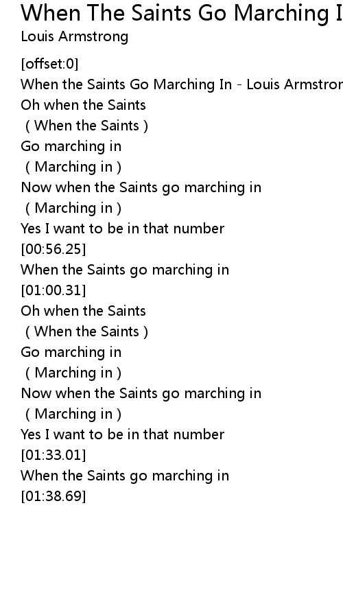 | [00:01.97] | When the Saints Go Marching In - Louis Armstrong |