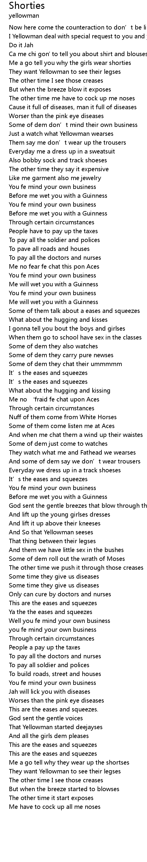 | Me a go tell you why the girls wear shorties | |