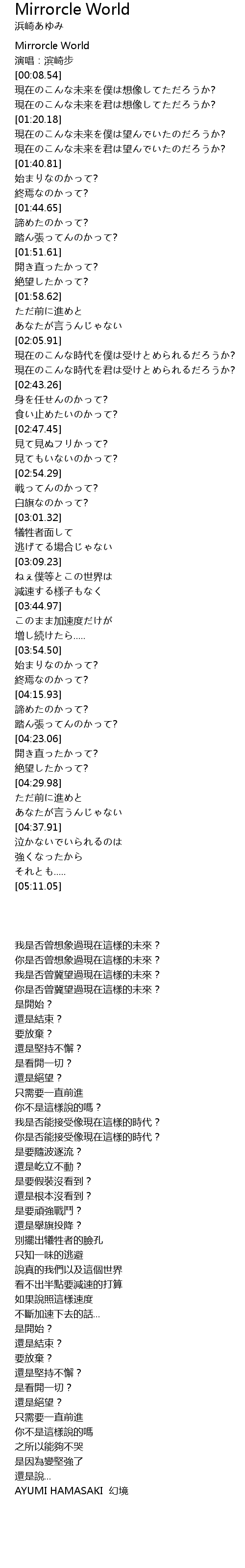 | [00:02.54] | Mirrorcle World |