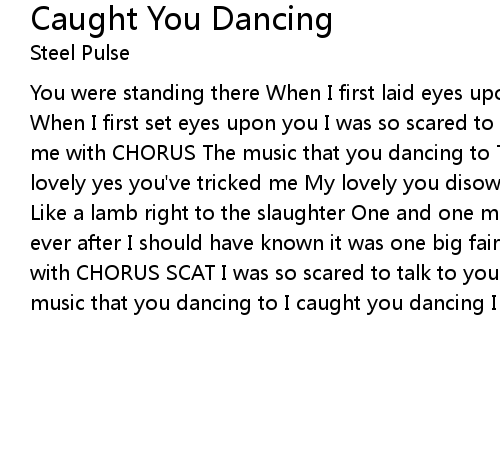 You were standing there When I first laid eyes upon you You were looking fair When I first set eyes upon you I was so scared to talk to you yeh You hypnotised me with CHORUS The music that you dancing to The music that you dancing to My lovely yes you've tricked me My lovely you disowned me CHORUS Unto you I went Like a lamb right to the slaughter One and one makes two I thought happiness ever after I should have known it was one big fairy tale yeh You hypnotised me with CHORUS SCAT I was so scared to talk to you yeh You mesmorised me with The music that you dancing to I caught you dancing I I yeh I I yeh. |