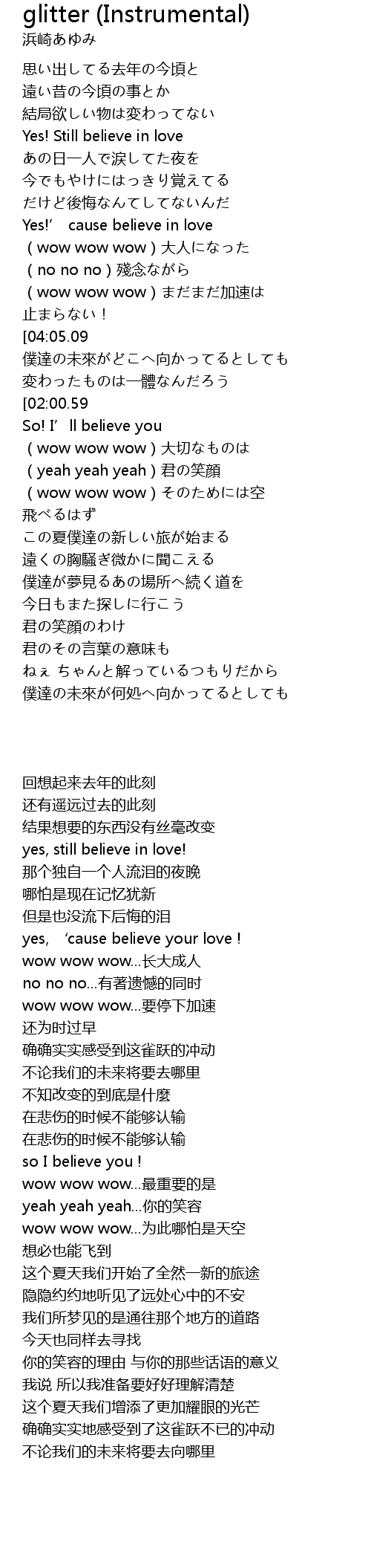 | [00:57.07] | yes, ‘cause believe your love ! |