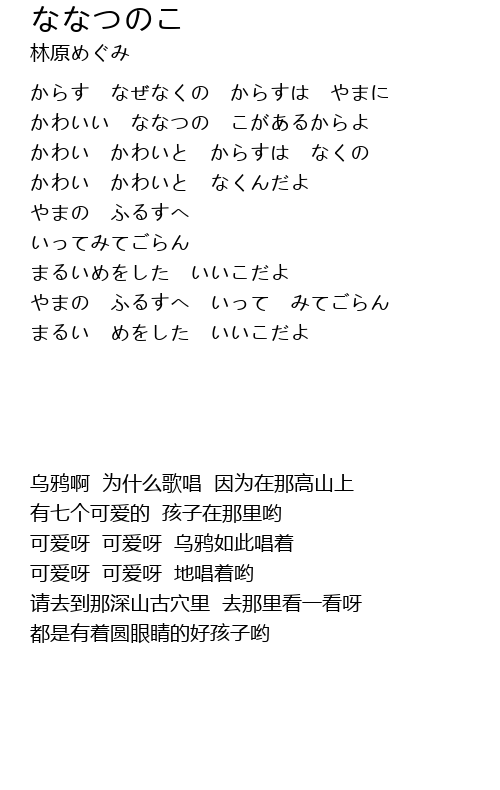| [00:42.00] | 可爱呀 可爱呀 乌鸦如此唱着 |