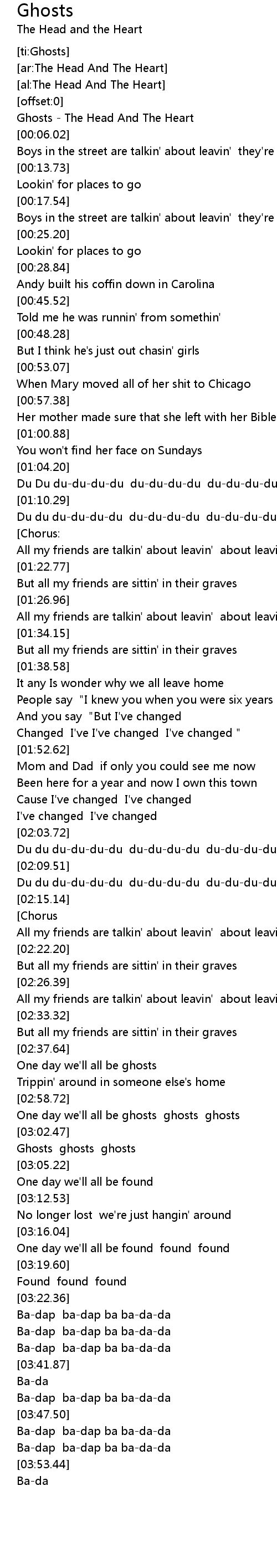 Ghosts - The Head And The Heart |