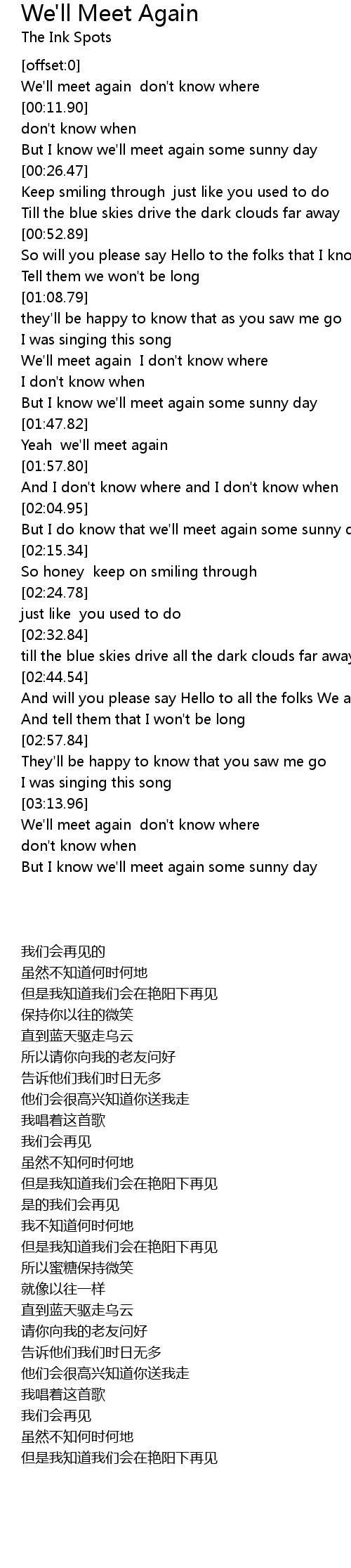 We'll meet again don't know where |
