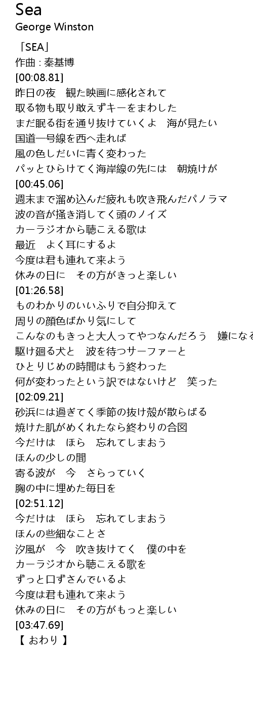 | [00:00.00] | 「SEA」 |