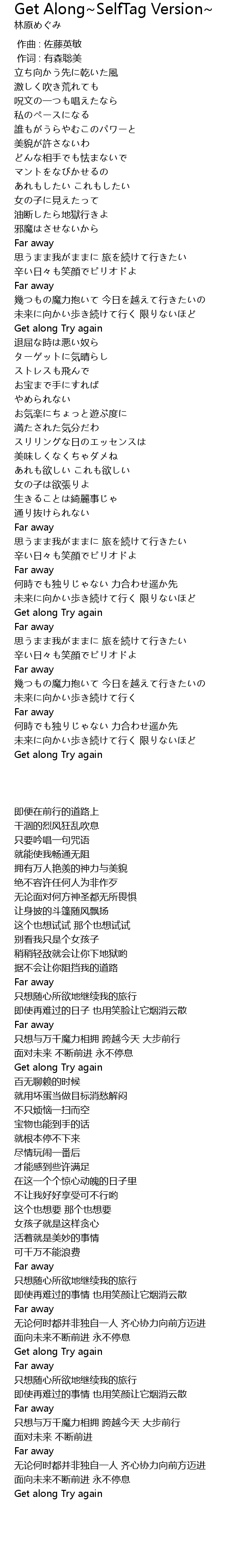 | 歌曲 | Get Along~SelfTag Version~ |