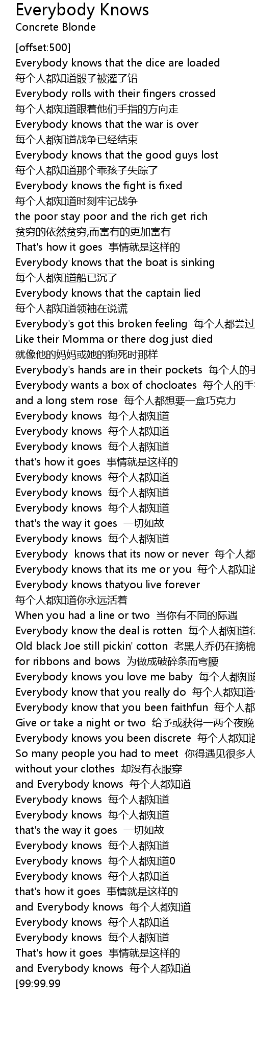 | [04:00.42] | Everybody knows 每个人都知道 |