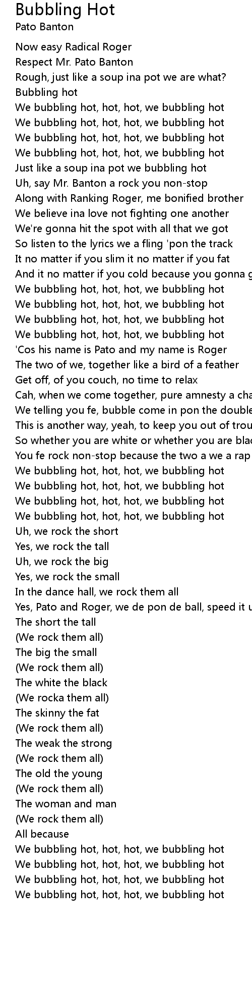 We bubbling hot, hot, hot, we bubbling hot |