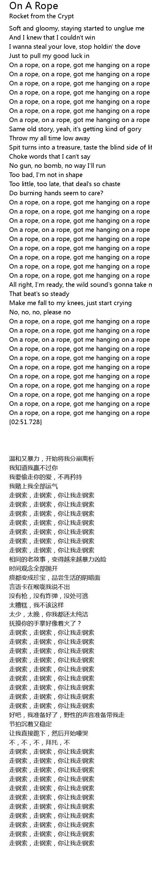 On a rope, on a rope, got me hanging on a rope |