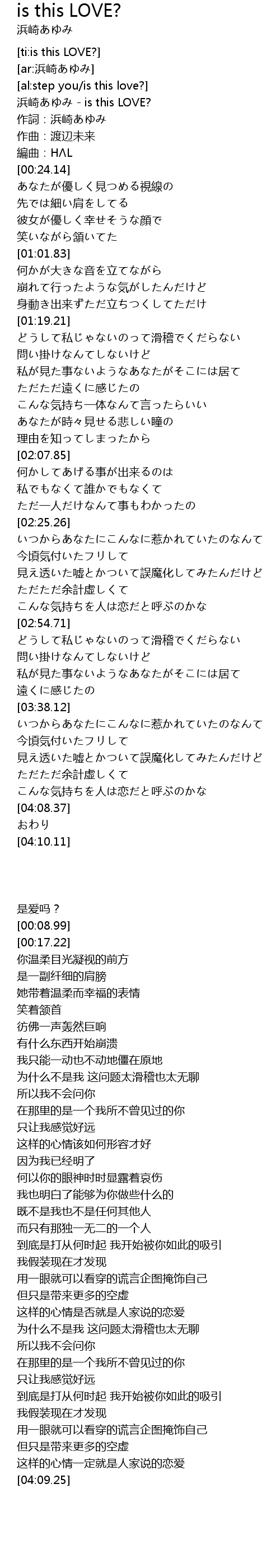 | [00:04.66] | 浜崎あゆみ - is this LOVE? |