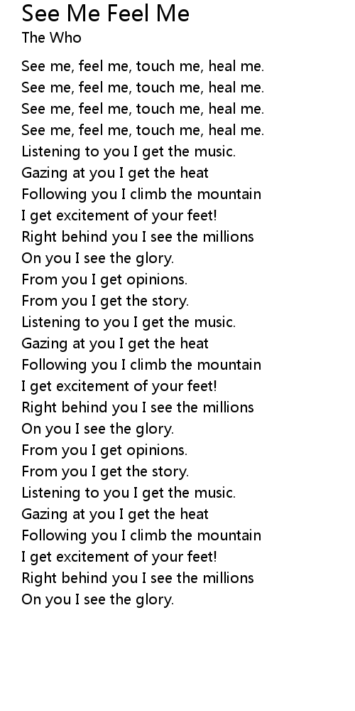 See me, feel me, touch me, heal me. |
