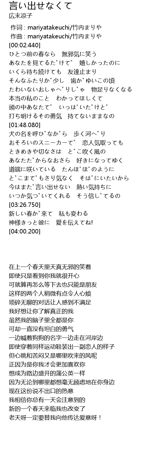 | [00:01.000] | zuo qu : mariyatakeuchi zhu nei |