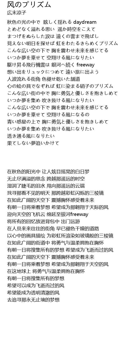 | [03:01.09] | いつか夢を集め 吹き抜ける風になりたい |