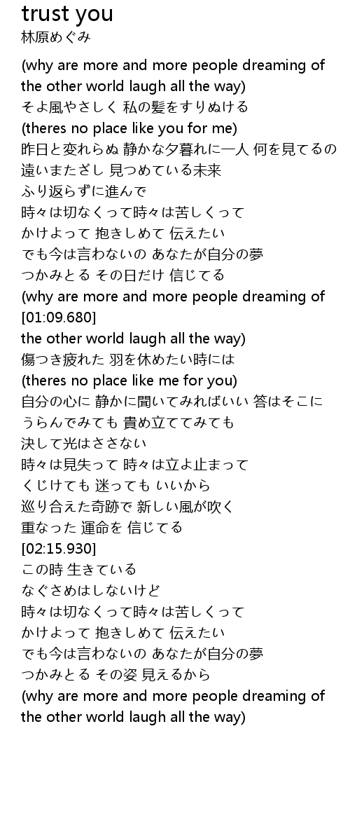 | [02:52.550] | でも今は言わないの あなたが自分の夢 |