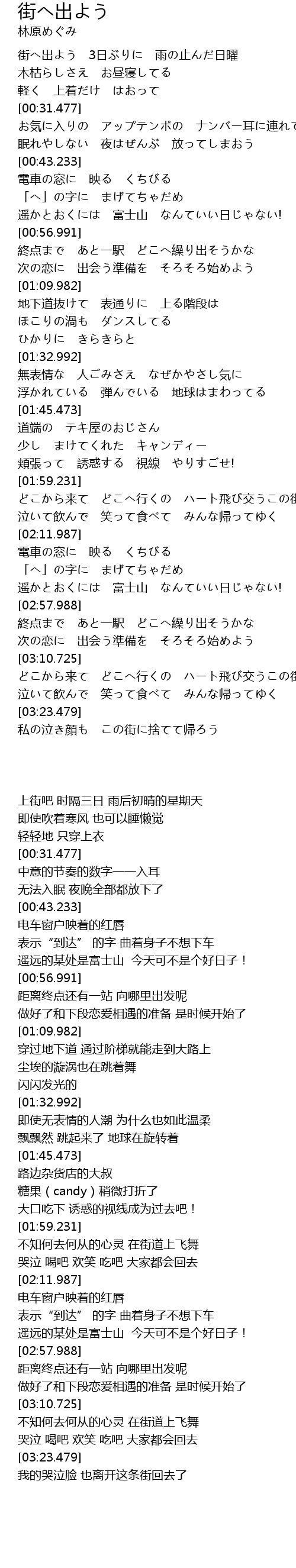 | [02:59.231] | 終点まで あと一駅 どこへ繰り出そうかな |