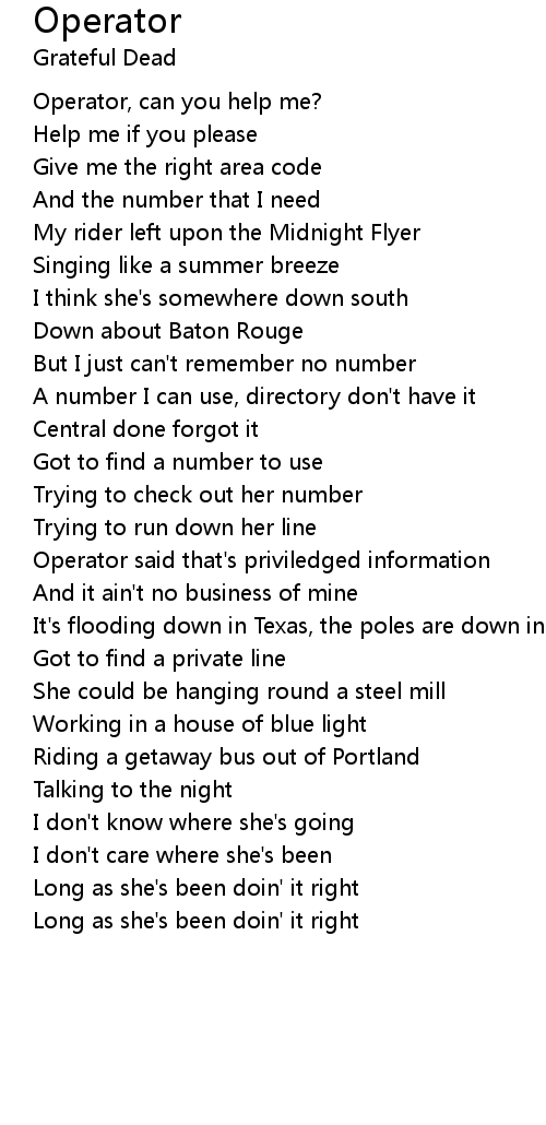 Operator 歌词