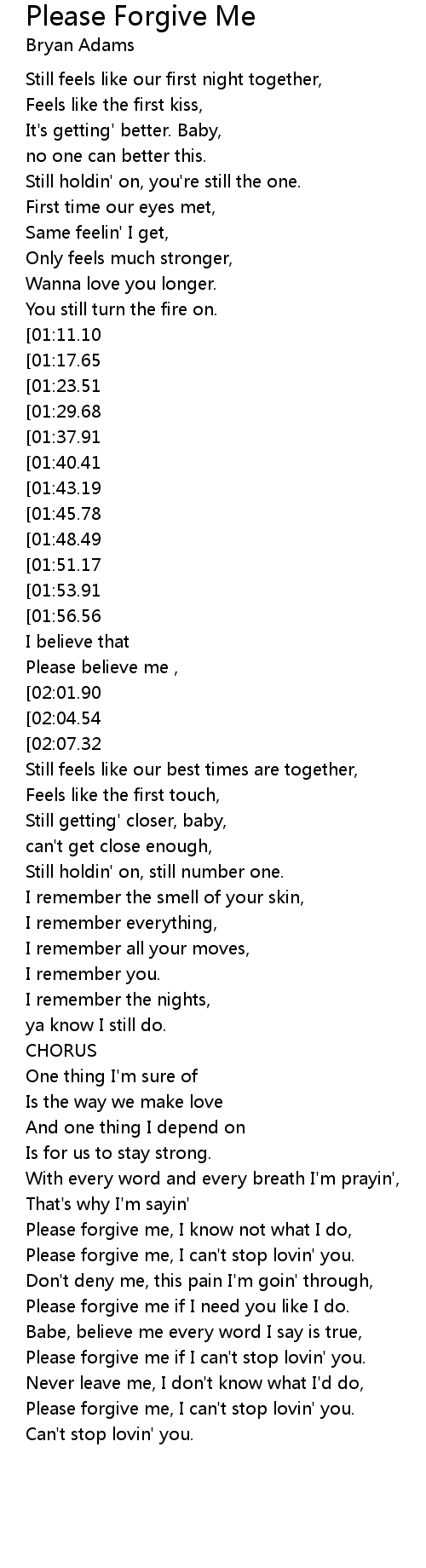 Please forgive me, I can't stop lovin' you. |