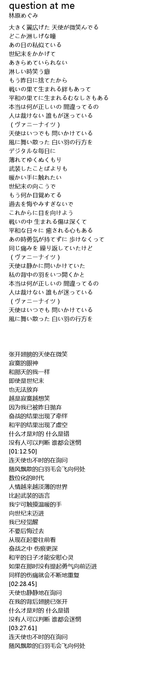 | [03:28.54] | 天使はいつでも 問いかけている |