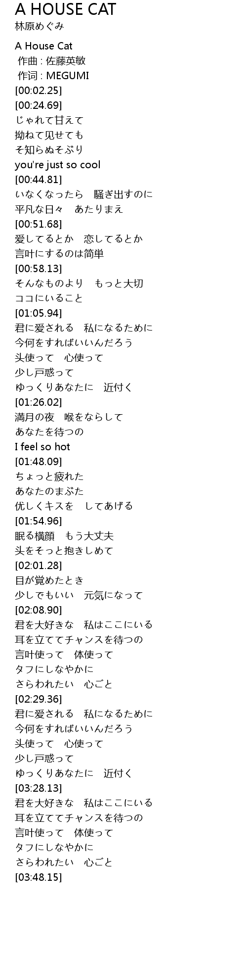 | 歌曲 | A HOUSE CAT |