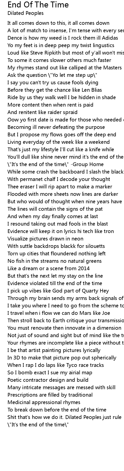 \"It's the end of the time\" -Group Home |