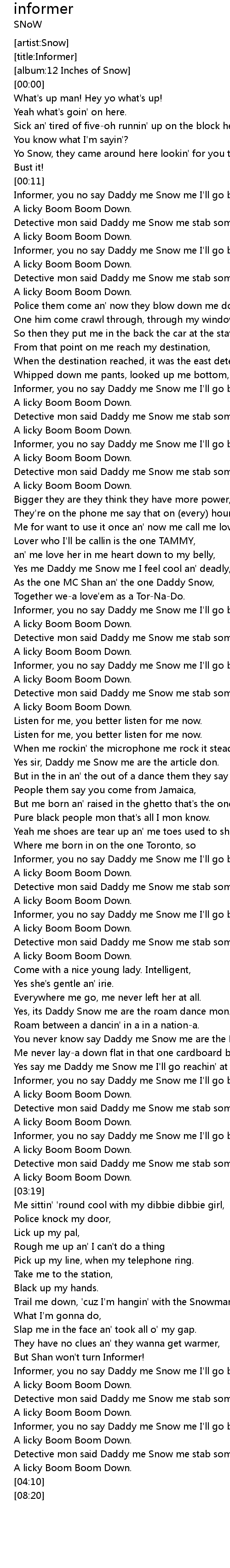 Informer, you no say Daddy me Snow me I'll go blame, |