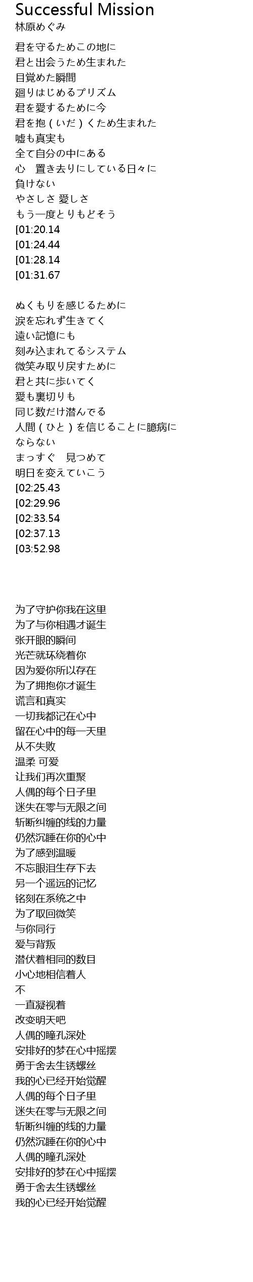 | [03:34.46] | 人偶的瞳孔深处 |
