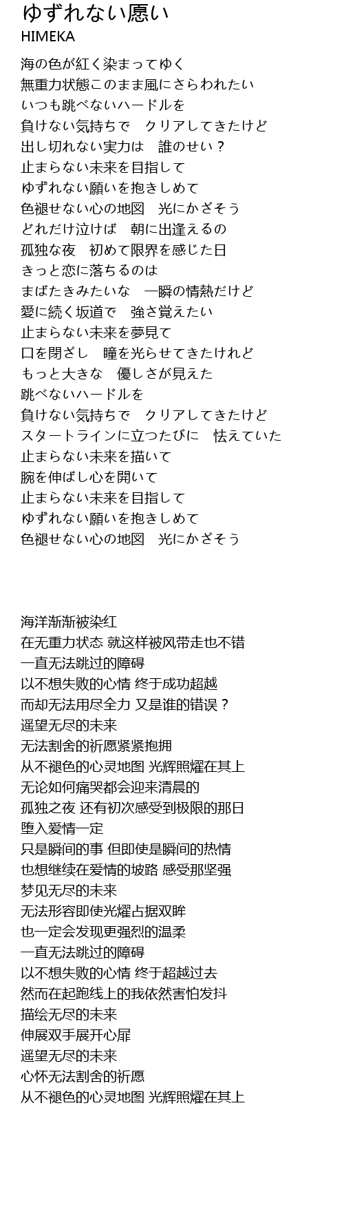 | [03:01.25] | ゆずれない願いを抱きしめて |