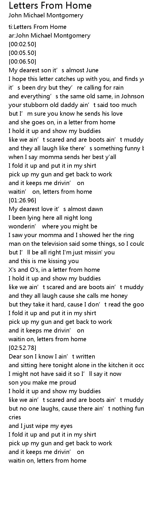 | [01:22.11] | waitin' on, letters from home |