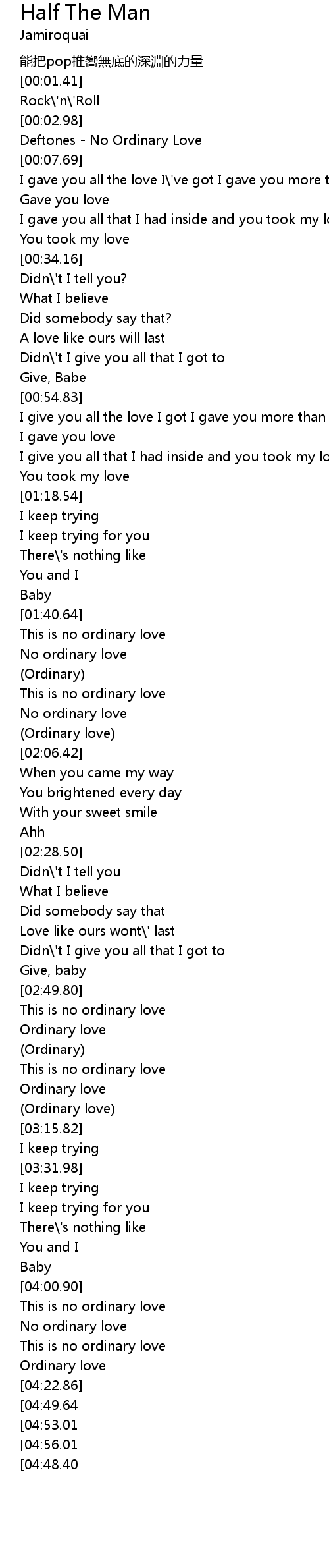 | [04:06.50] | No ordinary love |