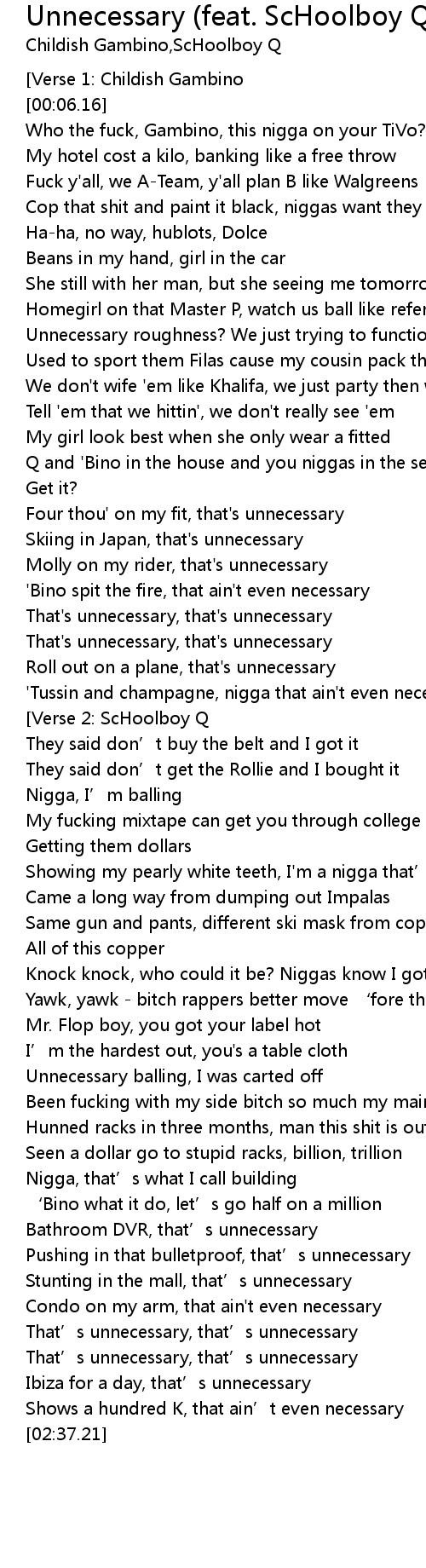 | 歌曲 | Unnecessary (feat. ScHoolboy Q) |
