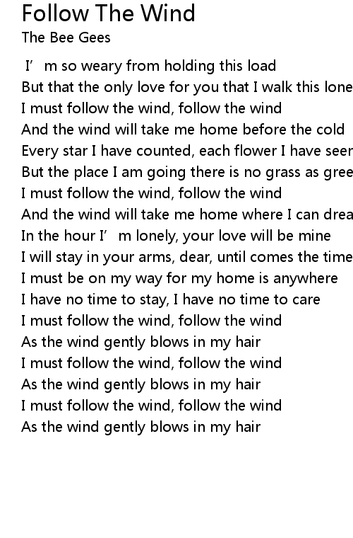 | [00:21] | I must follow the wind, follow the wind |