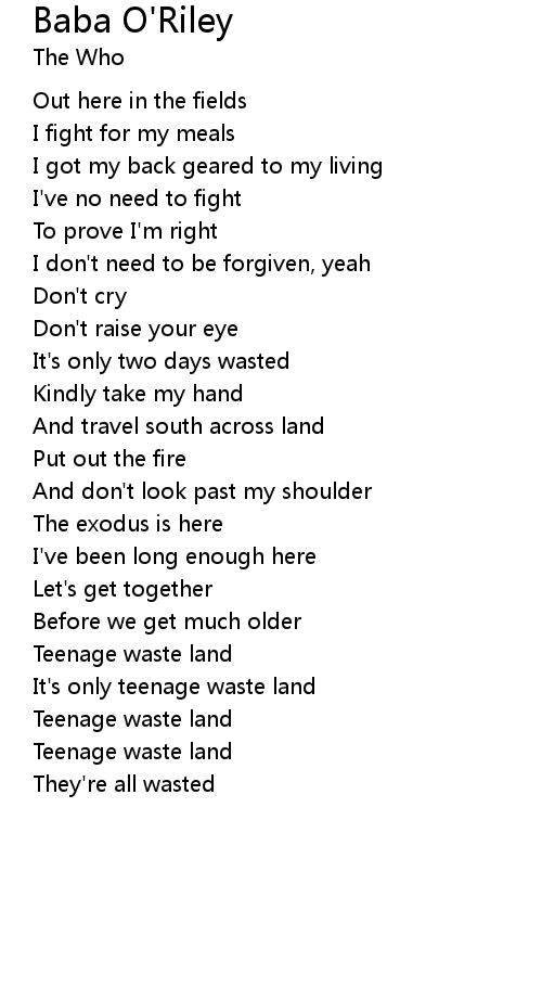 Teenage waste land |