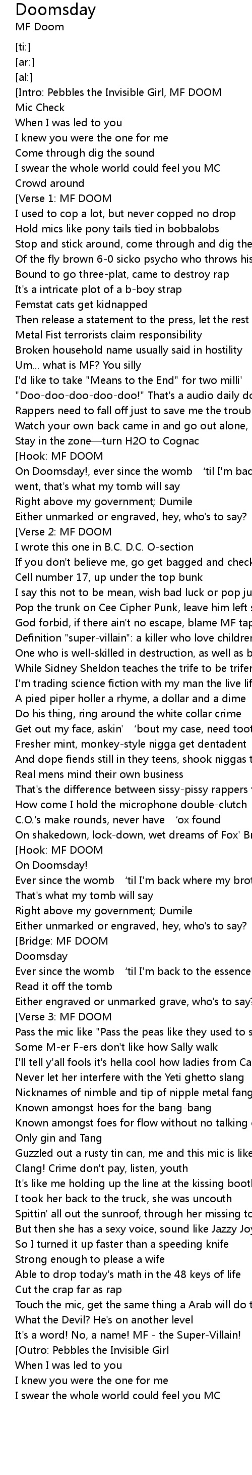 | [01:11.82][Hook: MF DOOM] | |