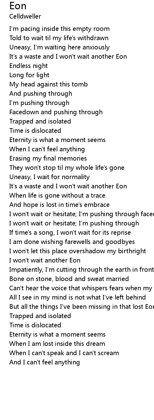 But all the things I've been missing in that lost Eon |