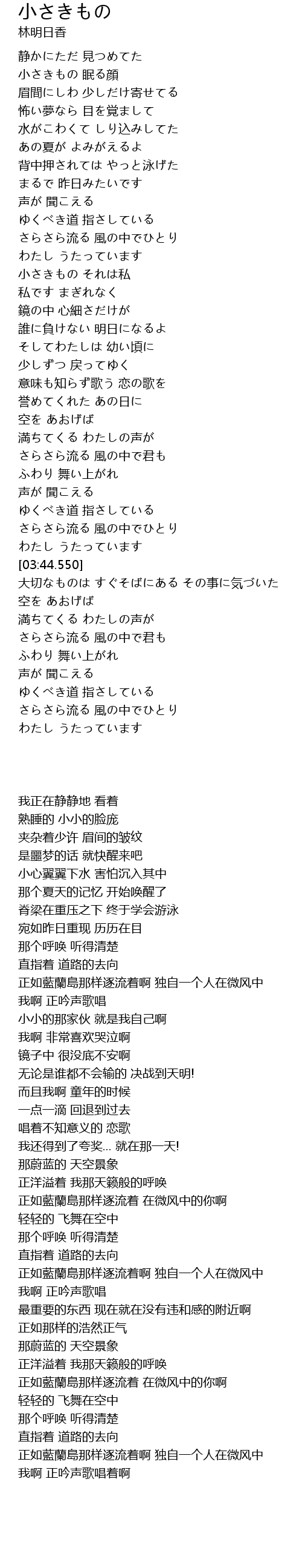 | [03:23.329] | 正如藍蘭島那样逐流着啊 独自一个人在微风中 |