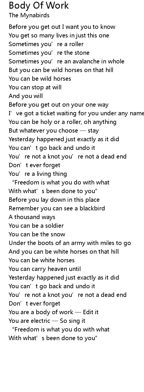 | 歌曲 | Body Of Work |