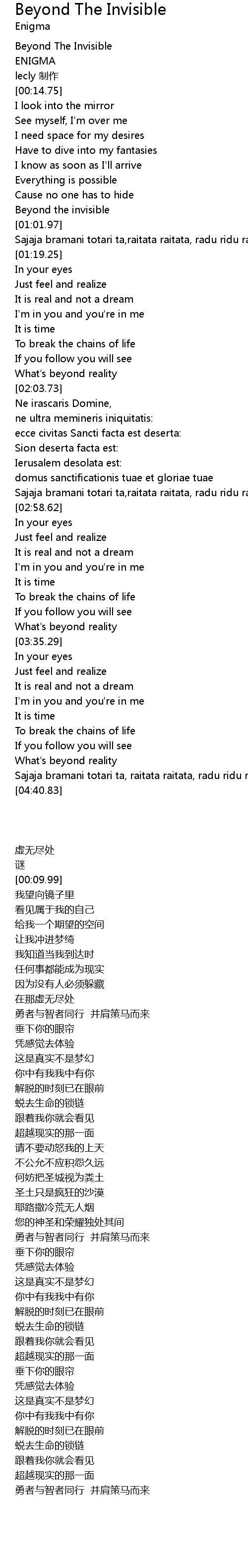 | [04:23.29] | What' s beyond reality |