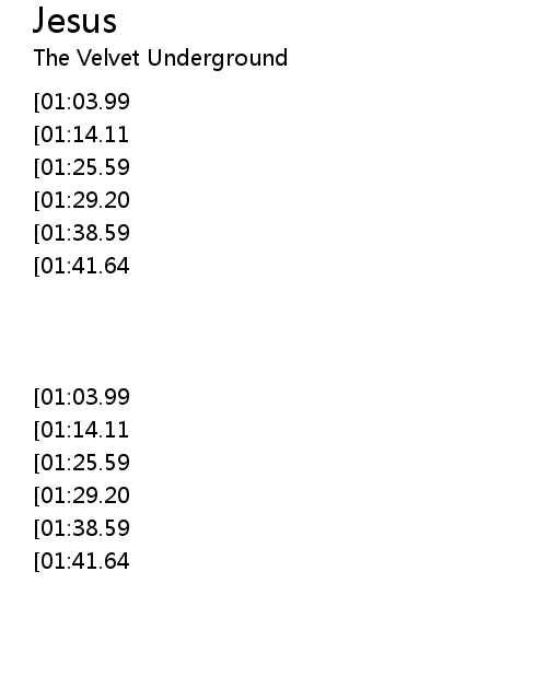 | [03:14.12][01:38.59][00:46.23] | Jesus |