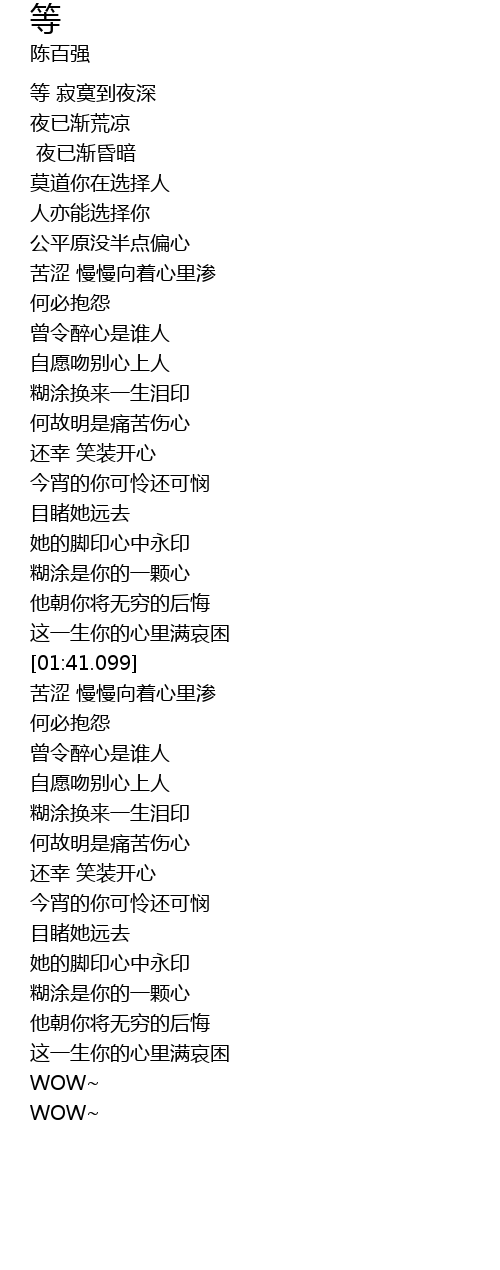 | [01:30.000] | 他朝你将无穷的后悔 |