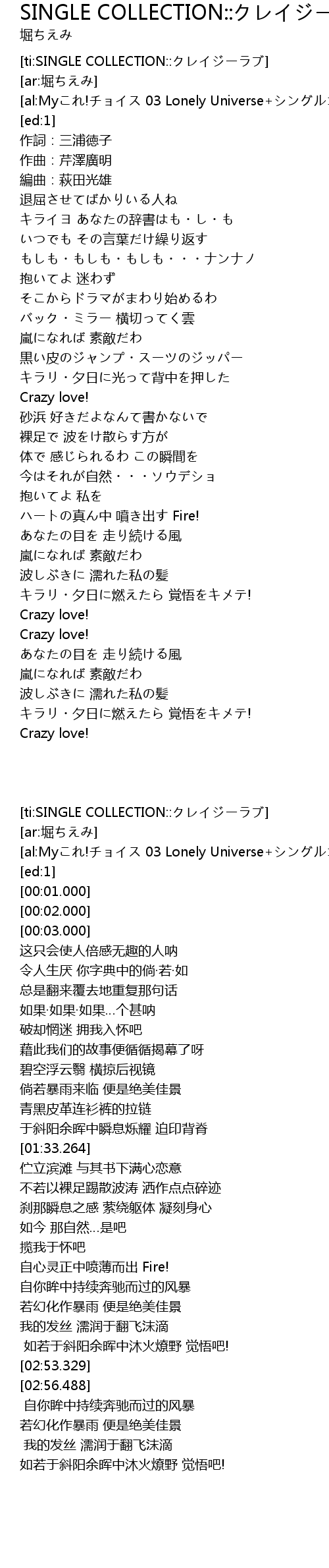 | [ti:SINGLE COLLECTION::クレイジーラブ] | |