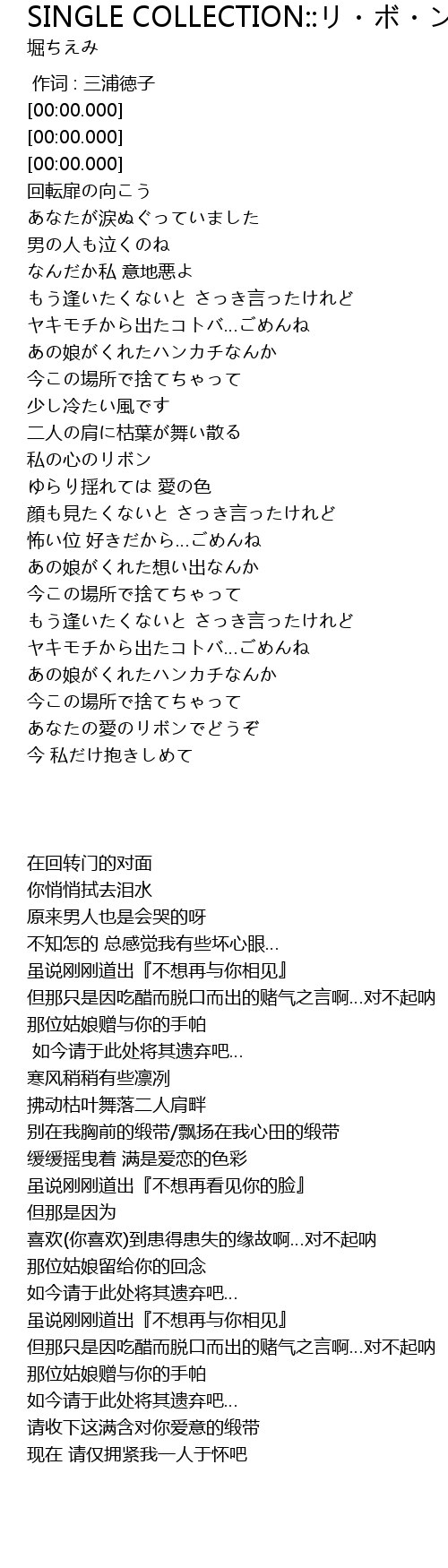 | 歌曲 | SINGLE COLLECTION::リ・ボ・ン |