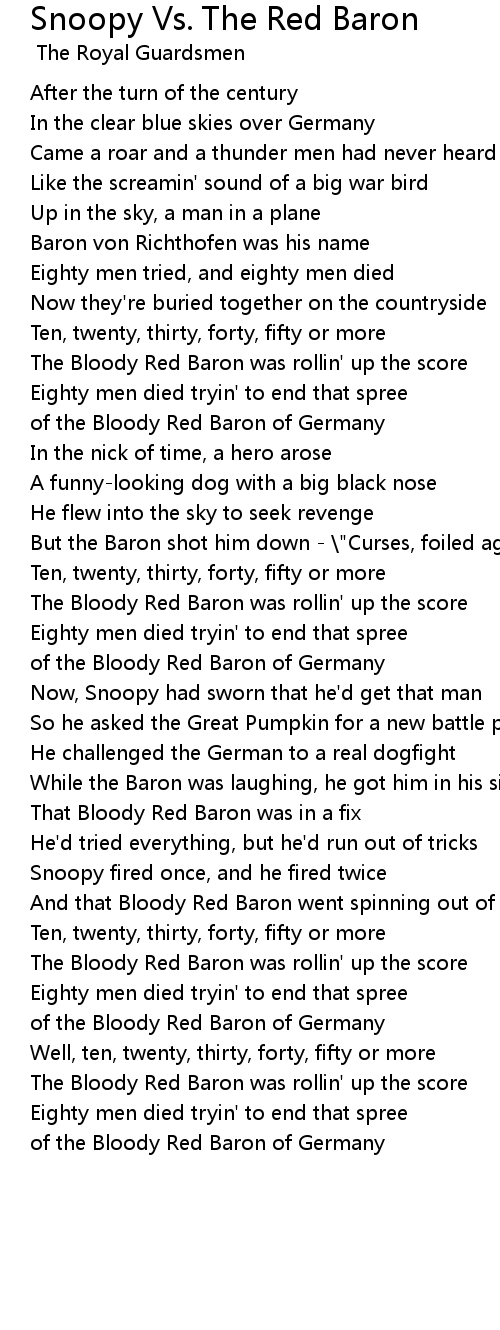 Snoopy Vs. The Red Baron 歌词